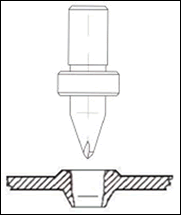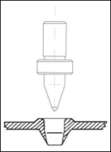 The long Fdrill has a long parallel body designed to produce a hole that is cylindrical for the entire bush length. Material that is backward extruded is rolled into a rim by the Flowdrill collar, ( L = LONG )*