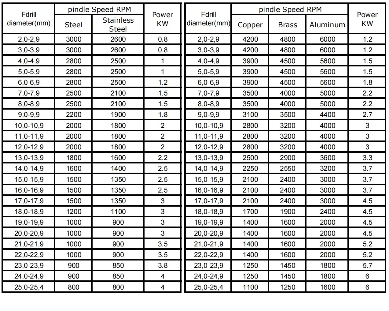 Spindle Speed and Power