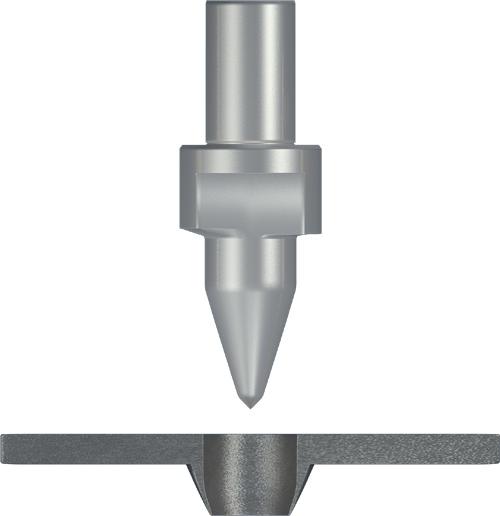 Fdrill熱熔鉆是由抗高溫、高硬度的碳化鎢制成的多邊形的錐形工具,工作區(qū)由鉆尖、圓錐體和圓柱體組成,中間是一個圓柱體的臺階(或多邊形刃口),最上面部分是配套散熱刀柄的夾持部分。