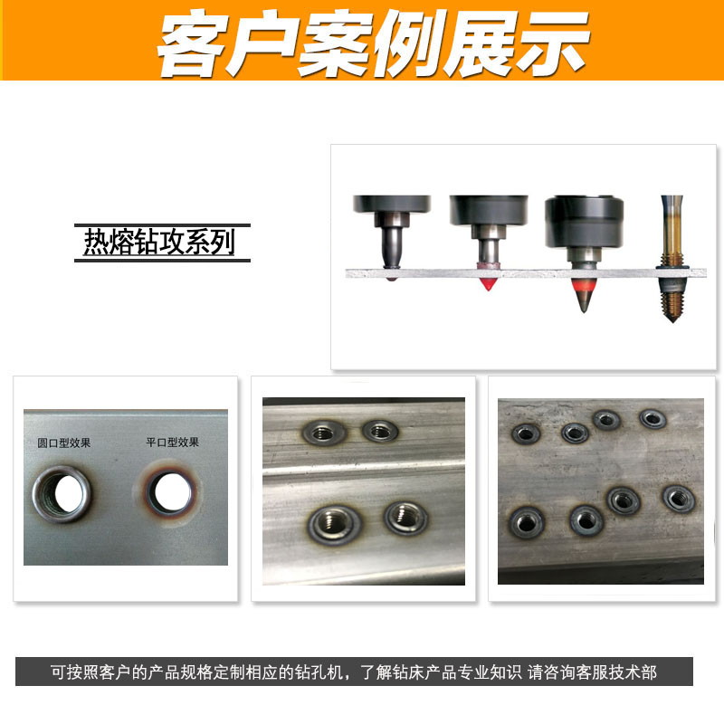 株洲熱鉆公司是國內(nèi)專門從事熱熔鉆研發(fā)和生產(chǎn)的公司,F(xiàn)drill熱熔鉆頭價(jià)格實(shí)惠,使用壽命長,性價(jià)比高。 株洲熱鉆開發(fā)的Fdrill牌熱熔鉆(又名熱鉆),是解決薄壁件、管件的螺紋連接難題,淘汰落后而繁瑣復(fù)雜的焊接螺母工藝,減化加工工序、提高品質(zhì)、節(jié)省成本,真正做到節(jié)能降耗的先進(jìn)工具,對(duì)產(chǎn)業(yè)的優(yōu)化和提升具有重大深遠(yuǎn)的意義