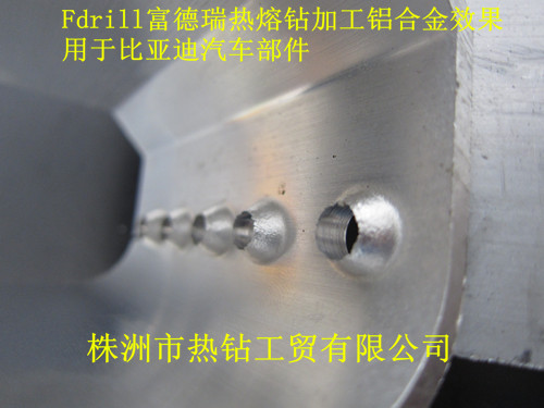近期有用戶反映用熱熔鉆在鋁合金材料上熱熔鉆孔加工時,會出現(xiàn)碎屑,襯套和凸臺邊緣開花,有毛刺的問題,鉆出來的效果不是特別美觀。。 在此,株洲熱鉆工貿(mào)就為用戶解答一下怎么解決這一問題。 合金的熔點(diǎn)比組成它的各物質(zhì)的熔點(diǎn)都要低。鋁合金材料特性決定了它的硬度比鋁高,但熔點(diǎn)更低,所以在熱熔鉆鉆孔過程中,需要達(dá)到很高的轉(zhuǎn)速來維持鉆孔的時的溫度,否則溫度將下來會對凸臺和襯套的成型效果產(chǎn)生很大影響。所以,在碰到凸臺開花的情況時候,需要適當(dāng)調(diào)節(jié)鉆床轉(zhuǎn)速。 另外一方面,就是熱熔膏。市面上加工鋼和不銹鋼所用的熱熔膏并不適合于色金屬加工,加工鋁合金時需要用特殊的專用潤滑油才行。