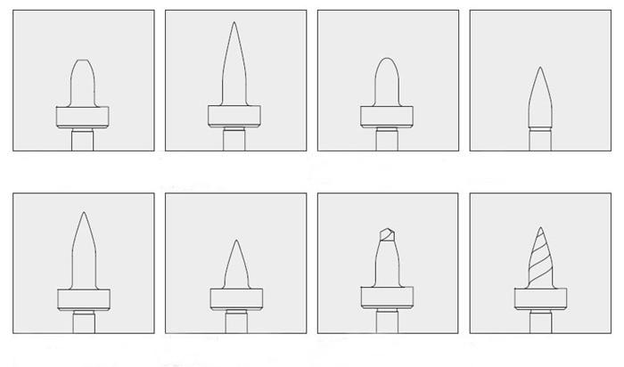 株洲熱鉆公司技術(shù)支持團(tuán)隊(duì)可以根據(jù)用戶的加工要求設(shè)計(jì)并生產(chǎn)特殊規(guī)格的非標(biāo)熱熔鉆頭。超長(zhǎng)熱熔鉆:此種鉆頭適合于因材料或特殊環(huán)境的要求而需要鉆頭的圓柱部分特別長(zhǎng)的情況;這種設(shè)計(jì)產(chǎn)生的襯套是一個(gè)很長(zhǎng)的圓柱體。超短熱熔鉆:此種鉆頭適合于因材料或特殊環(huán)境的要求(如管道)而需要鉆頭的圓柱部分特別短的情況;這種設(shè)計(jì)產(chǎn)生的襯套是圓錐形的,攻絲后提供強(qiáng)大拉力。與短鉆很相似,但其錐形部分較短,加上42度角,一般用于小管、小孔加工。鉆頭頭部特殊半徑的熱熔鉆:鉆頭的圓柱頂部部分可以改變,用于控制環(huán)狀凸臺(tái)的形狀或形成一個(gè)埋頭螺孔。特殊角度熱熔鉆:鉆頭的劃平部分可以是一個(gè)特殊的角度。標(biāo)準(zhǔn)的劃平型鉆頭與水平面成5度角,這個(gè)角度可以增加,以使沿孔產(chǎn)生一個(gè)倒角。擴(kuò)孔用熱熔鉆:可以在材料上將原來(lái)較小的孔熱熔擴(kuò)孔,形成更大直徑的襯套。